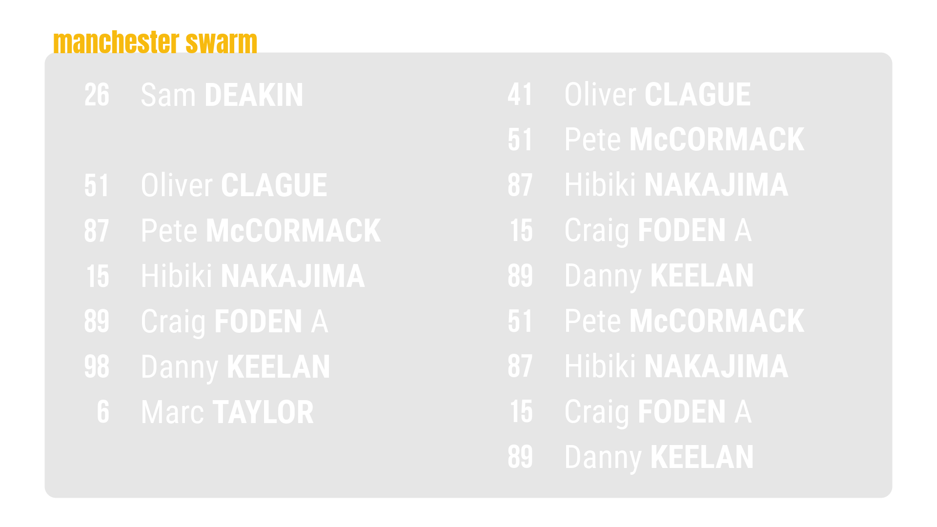 | 15 | Craig FODEN | 0 | Jake BROUGHTON | ||||