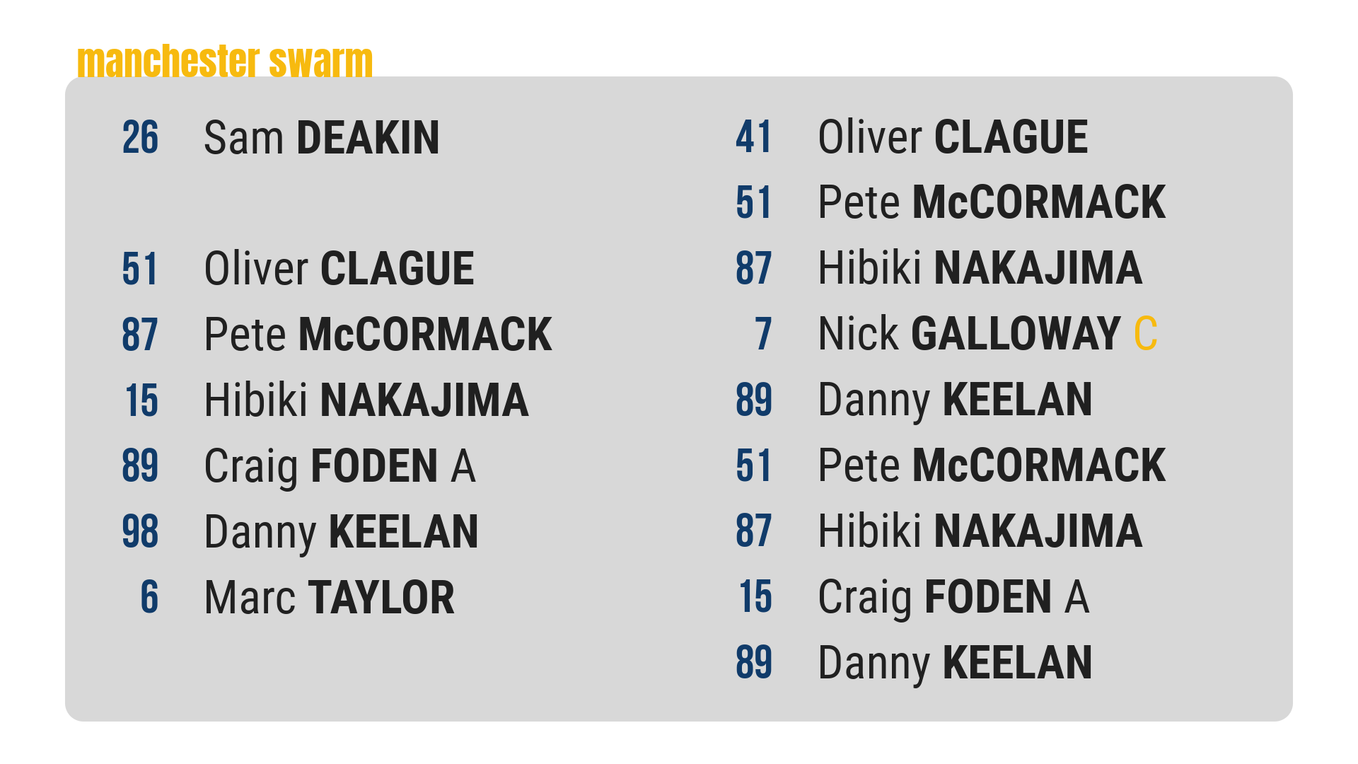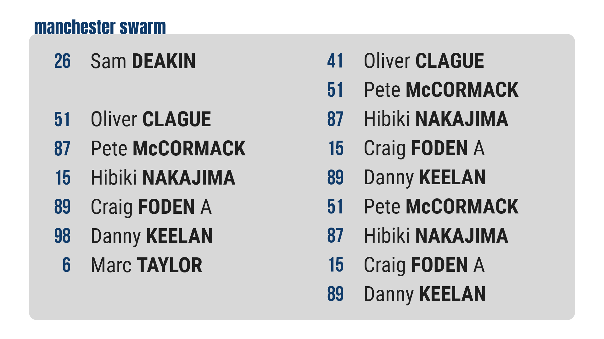 | 35 | Harry KELLY | 0 | Jake BROUGHTON | ||||
