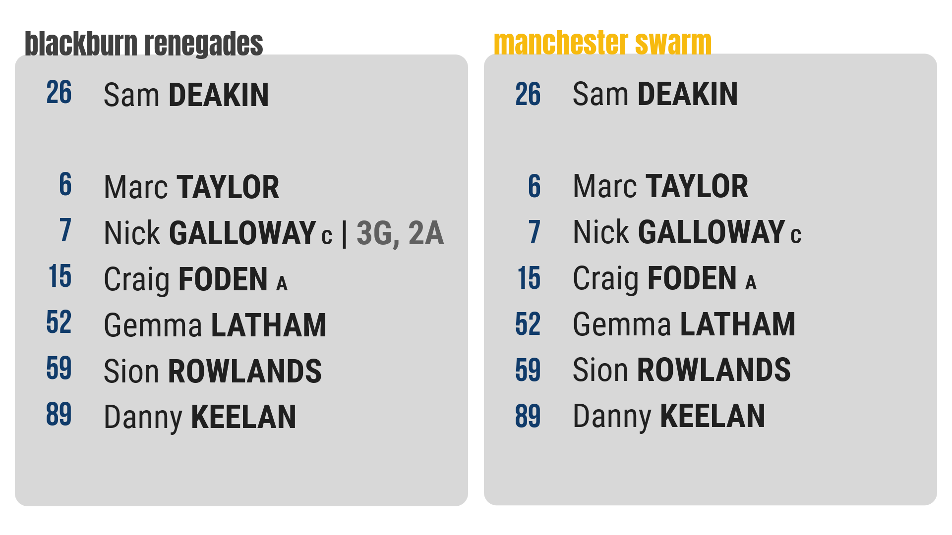 | 6 | Marc TAYLOR | 0 | Jake BROUGHTON | ||||