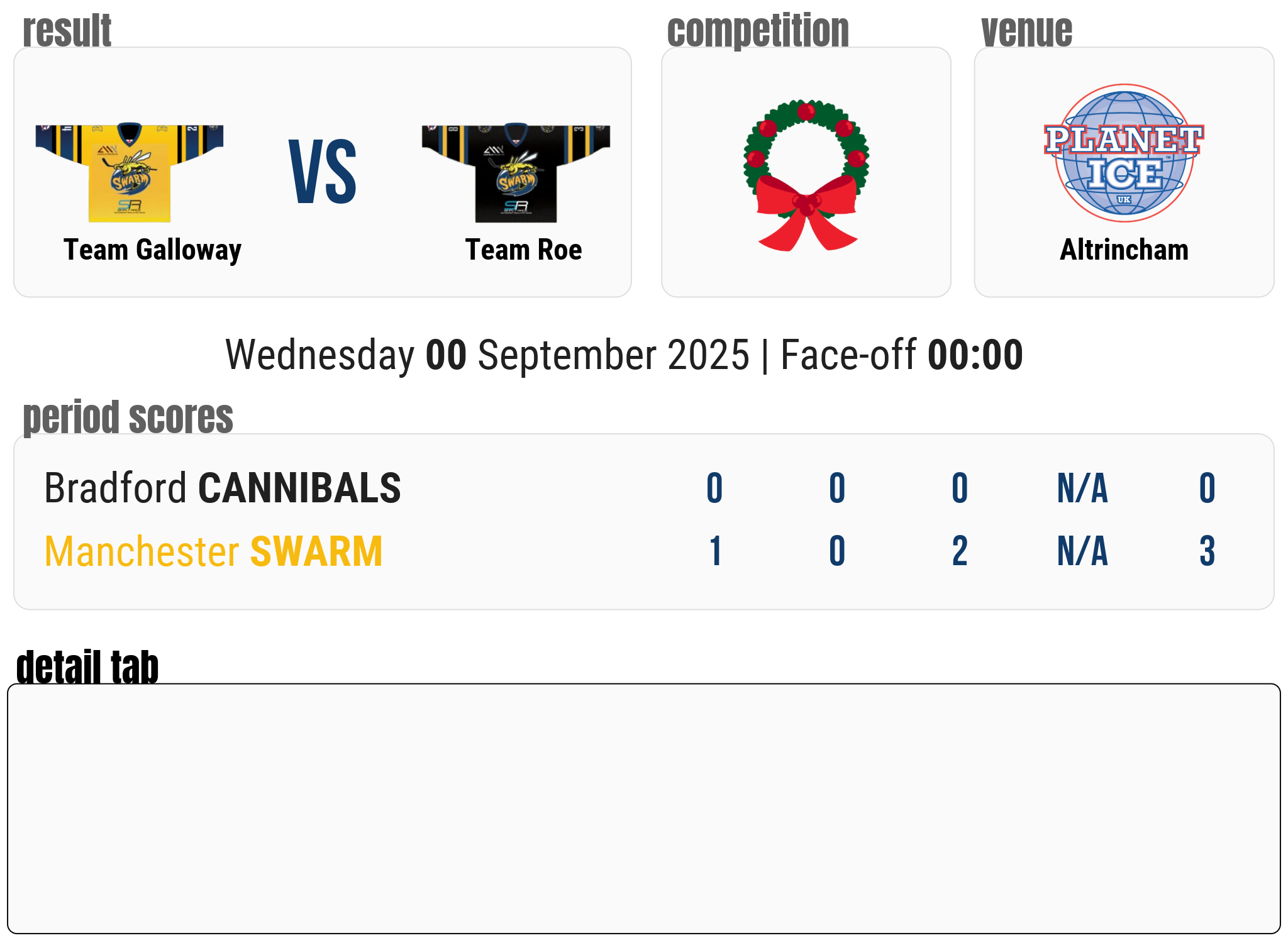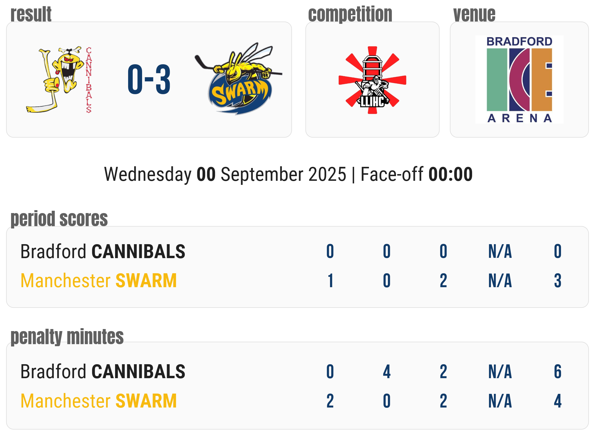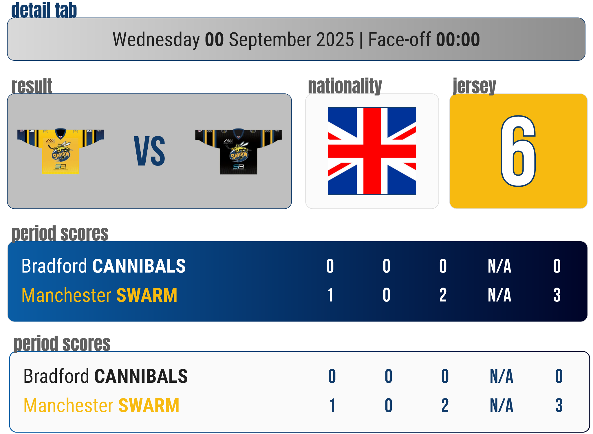 | Wednesday, 00th | Face-off 00:00 | Nottingham | View match > | |||